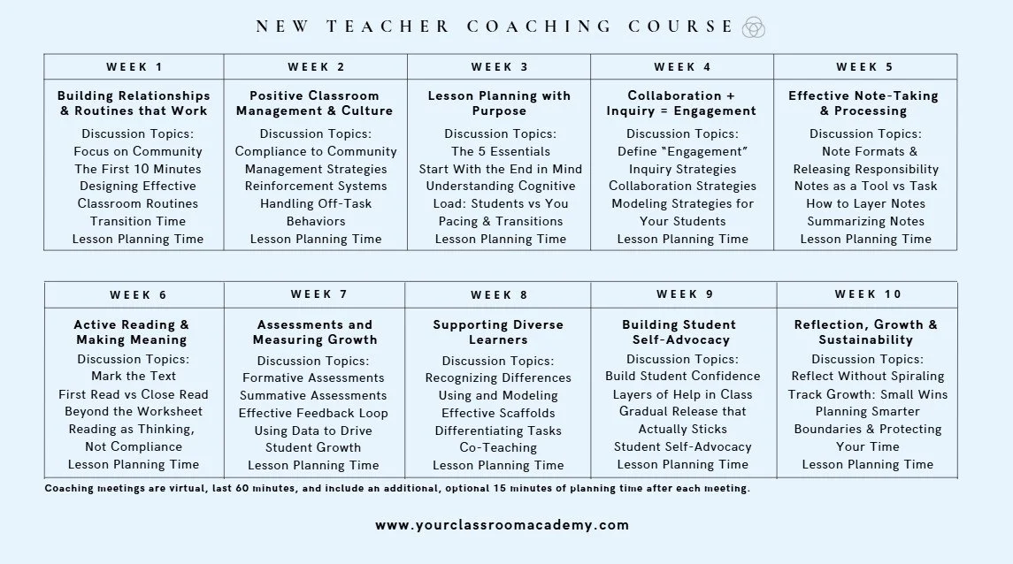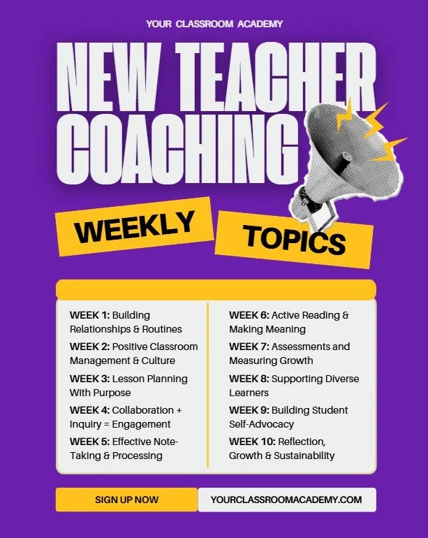 Now recruiting for our Spring 2026 10-Week New Teacher Coaching Course. Click below to reserve your spot!