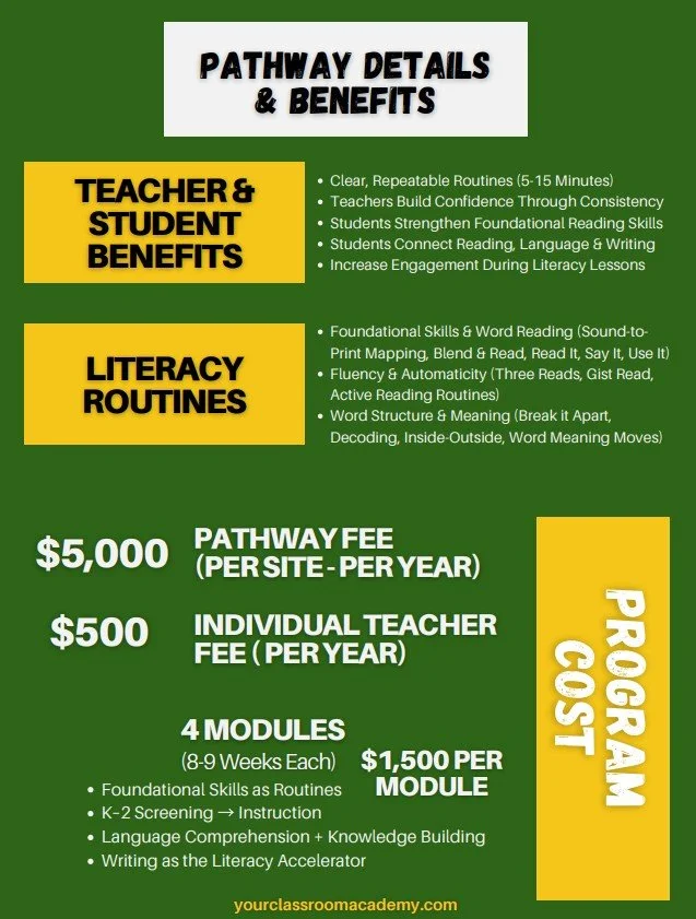The Literacy Pathway includes research-aligned literacy strategies and instructional routines designed to support reading comprehension, vocabulary development, and student engagement across content areas.