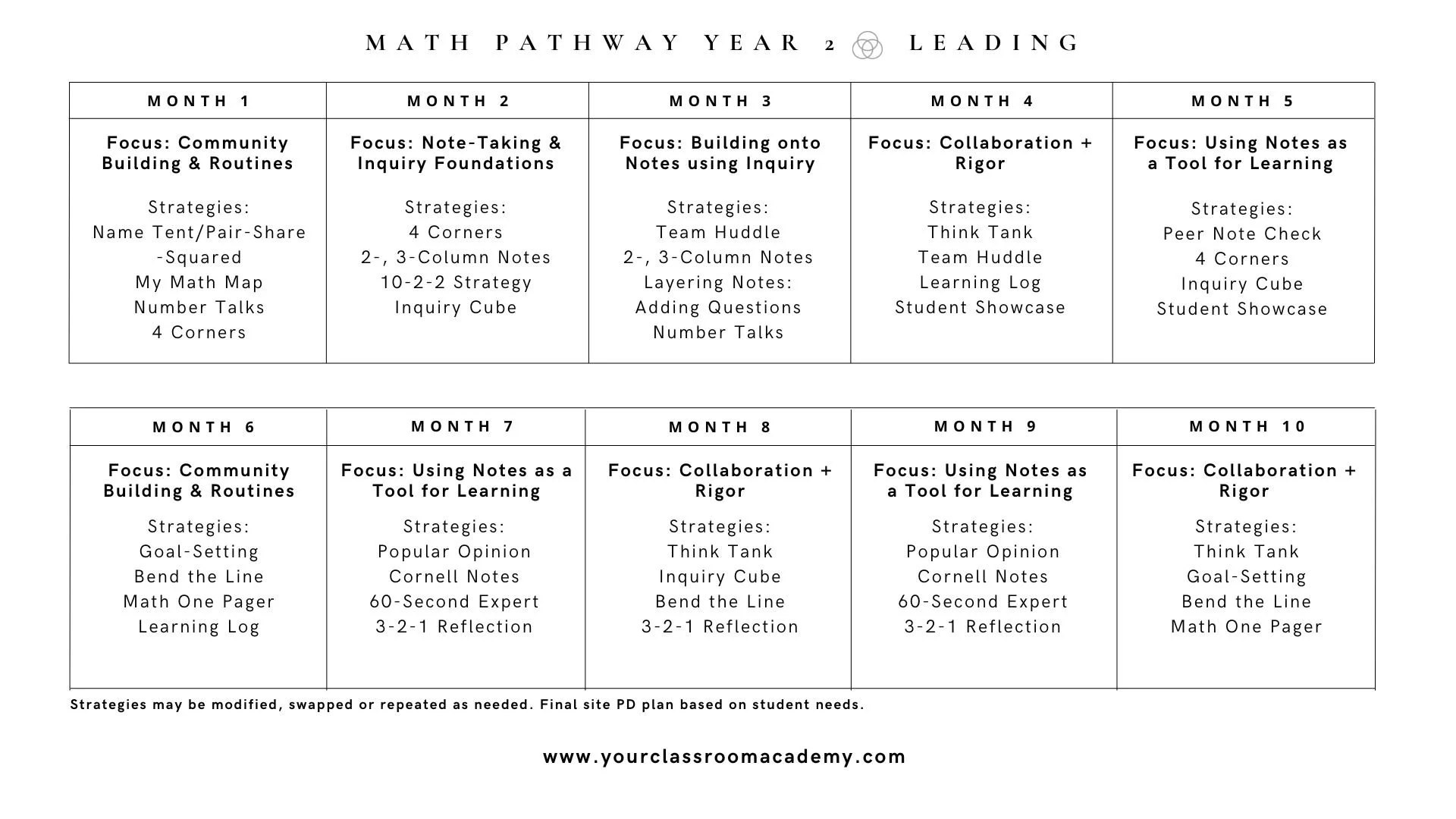 Explore the 10-month Pathways for Year 1: Launching, and Year 2: Leading. Each Pathway is differentiated for elementary and secondary. Click here to access the documents via Canva.